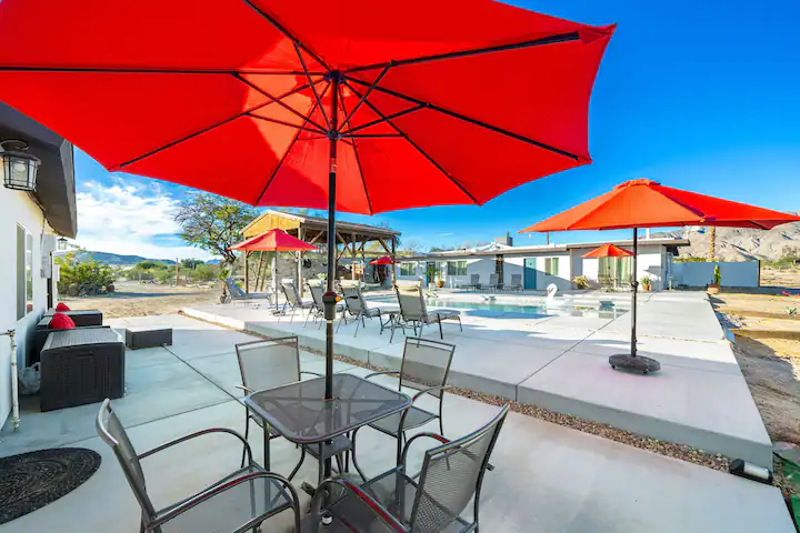 We (4 adults and 3 kids) enjoyed staying here for 3 days. It’s 20 mins from the aerial tramway and 50 mins from Joshua tree. Or just stay, chill, and enjoy the Mountain View from backyard. My kids’ favorite is the pool/jacuzzi, and basketball/foosball in the garage.